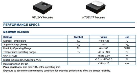 圖2: HTU2x系列參數(shù)規(guī)格