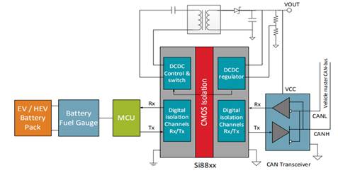 比如在電源管理系統(tǒng)應(yīng)用中,針對電池端以及CAN通信總線端進行隔離。