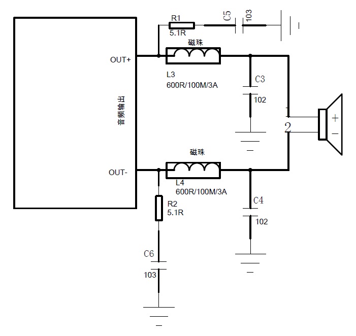 很多工程師在運(yùn)用D類功放IC的過程中,收音干擾是個(gè)很頭疼的問題。根據(jù)上海智浦欣原廠的推薦,下圖對改善收音效果有很大的幫助,也在很多案例上得到成功驗(yàn)證: