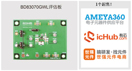 本產(chǎn)品已于2019年4月開始出售樣品(樣品價(jià)格300日元/個(gè),不含稅),計(jì)劃于2019年10月開始暫以月產(chǎn)100萬個(gè)的規(guī)模投入量產(chǎn)。前期工序的生產(chǎn)基地為ROHM Hamamatsu Co.,Ltd.(日本濱松市),后期工序的生產(chǎn)基地ROHM Apollo Co., Ltd.(日本行橋市)。此外,搭載本產(chǎn)品的評估板“BD83070GWL-EVK-001”也與本新聞稿發(fā)布同期開始網(wǎng)售,客戶可從Ameya360、icHub、Sekorm購買。