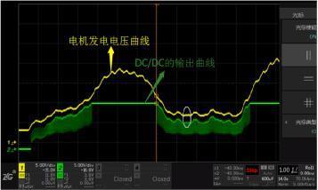 圖1電機(jī)發(fā)電曲線和DCDC的輸出曲線