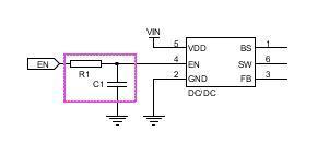 對(duì)于電源芯片,我們通常使用分壓電阻將EN信號(hào)接到電源的輸入引腳上,來(lái)防止EN端的電壓超過(guò)它的耐壓值。而在滿足耐壓值得條件下,還要將EN腳的電壓設(shè)定在“合適”的范圍。