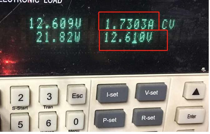 3. 如果第4腳接高電平,電池電壓是12.6V,此時芯片工作于四節(jié)充電狀態(tài),電池端12.6V是恒流充電范圍,電流是1.73A