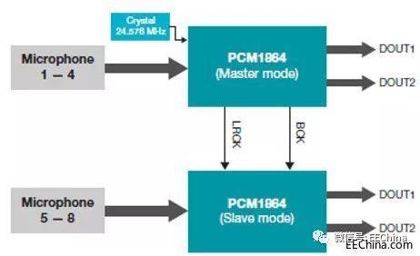 在采用多麥克風(fēng)設(shè)計(jì)和語音識(shí)別時(shí),我們也無需重新設(shè)計(jì);赑CM1864 的TI 圓形麥克風(fēng)板(CMB) 參考設(shè)計(jì)(如圖 3 所示)使用兩個(gè) 4 通道音頻ADC 與一組模擬麥克風(fēng)(最多含八個(gè))連接,并且可以在嘈雜的環(huán)境中提取清晰的用戶語音指令。