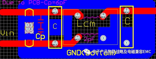 比如系統(tǒng)的設(shè)計(jì)LCM器件的雜散電容為2pF;其諧振頻率點(diǎn)在4MHZ左右;進(jìn)行PCB的鋪地銅的設(shè)計(jì)由于PCB的布線,其輸入的走線與PCB的鋪地銅帶來有6pF的耦合電容參數(shù);分析如下: