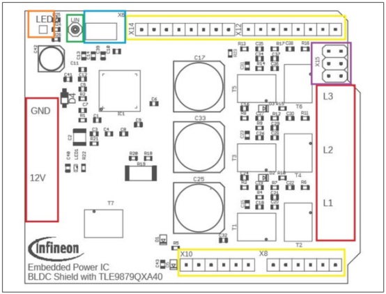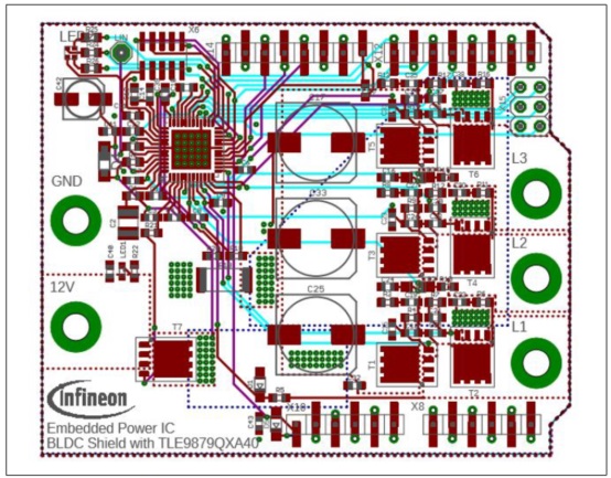 圖6. TLE9879 BLDC Arduino馬達(dá)控制板元件放置圖