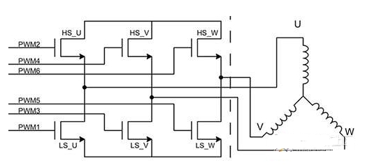 電機(jī)控制系統(tǒng)一個(gè)完整的電機(jī)控制系統(tǒng)包括電源、主機(jī)微控制器、柵極驅(qū)動(dòng)器以及采用半橋拓?fù)浣Y(jié)構(gòu)的 MOSFET(圖 2)。微控制器用于設(shè)置 PWM 占空比并負(fù)責(zé)開環(huán)控制。在低壓設(shè)計(jì)中,柵極驅(qū)動(dòng)器和 MOSFET 橋有時(shí)會(huì)集成在一個(gè)單元中。然而,對(duì)于高功率單元,為方便熱管理,柵極驅(qū)動(dòng)器和 MOSFET 橋會(huì)分開布置,這樣可以針對(duì)柵極驅(qū)動(dòng)器和橋采用不同的工藝技術(shù)并最大限度地降低 EMI。