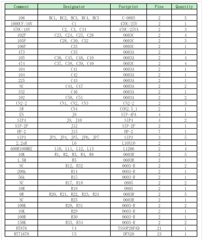 HT71678輸入電壓從2.7V到13V,輸出電壓范圍從4.5V到13V,通過外圍設置工作于多種動態(tài)升壓模式。針對3.7V單節(jié)鋰電選擇5V、7V、9V動態(tài)升壓工作模式。HT876工作電壓從2.5V-9.8V,適合做2x10W輸出;針對7.4V雙節(jié)鋰電選擇9V、10V、11.3V、12.8V動態(tài)升壓工作模式。CS8676工作電壓從5V-18V。適合做2x20W輸出。