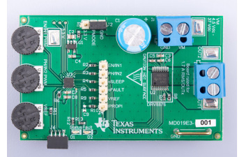 The DRV8876x/74xEVM is a complete solution for evaluating the DRV8876/74x H-bridge motor drivers. Itincludes an MSP430™ microcontroller that is preprogrammed to take input from two dedicated analogpotentiometers for PWM speed control of one or two brushed DC motors. The jumper on the PMODE pinallows the user to select from the input modes of PH/EN (GND), PWM (3.3 V), and independent halfbridgecontrol (Hi-Z). Power can be provided externally up to 37 V through the power header.