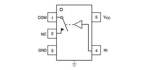 模擬開(kāi)關(guān)使用并行的 P 溝道 MOSFET 與 N 溝道 MOSFET 來(lái)創(chuàng)建雙向開(kāi)關(guān)。ON Semiconductor 的 NS5B1G384 SPST 常閉模擬開(kāi)關(guān)便是一個(gè)簡(jiǎn)單的 CMOS 模擬開(kāi)關(guān)示例(圖 1)?刂戚斎敫鶕(jù)器件配置是常開(kāi) (NO) 還是常閉 (NC),將適當(dāng)?shù)哪孀兒头悄孀冃盘?hào)發(fā)送到 MOSFET 柵極。