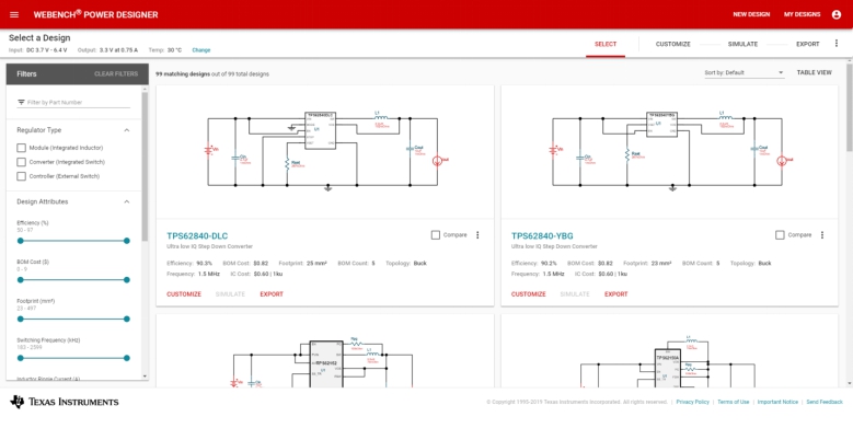 選擇眾多器件后,WEBENCH Power Designer會為每個器件執(zhí)行詳細(xì)設(shè)計(jì)。