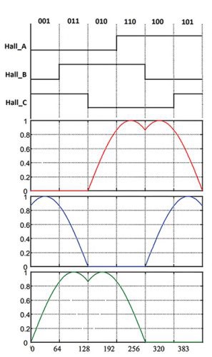 換向由轉(zhuǎn)子和定子的相對(duì)位置確定,具體則通過霍爾效應(yīng)傳感器測(cè)量,或通過電機(jī)轉(zhuǎn)動(dòng)時(shí)生成的反電動(dòng)勢(shì) (EMF) 幅度測(cè)量(限無傳感器電機(jī))。