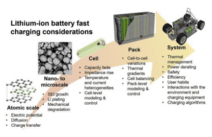 提升充電速度雖然會(huì)帶來(lái)充電時(shí)間上的縮短,但是過(guò)高的充電速度也會(huì)導(dǎo)致電池的衰降速度加快,影響電動(dòng)汽車的使用壽命。近日,英國(guó)帝國(guó)理工大學(xué)的Anna Tomaszewska(第一作者,通訊作者)、Xuning Feng(通訊作者)和清華大學(xué)的歐陽(yáng)明高院士等從材料層面到系統(tǒng)層面全方位的對(duì)鋰離子電池快充的影響因素、衰降機(jī)理和解決方法進(jìn)行了回顧和綜述。