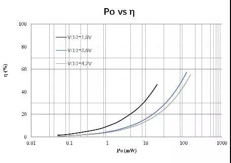 HT97180支持更低的電源供電,實(shí)現(xiàn)相同功率下更高的效率,從而延長(zhǎng)便攜式電池設(shè)備的播放時(shí)間。如在耳機(jī)聽(tīng)音較長(zhǎng)使用的5-10mW區(qū)間內(nèi),如下圖所示,在HT97180在1.8V供電時(shí),比其他同類(lèi)競(jìng)品使用鋰電池直接供電情況下,效率提升了約一倍,播放時(shí)間可延長(zhǎng)約一倍的時(shí)間。
