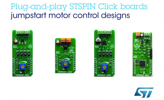 2019年10月10日——意法半導(dǎo)體(ST)與ST授權(quán)合作伙伴MikroElektronika合作,開發(fā)出四款Click board™開發(fā)板,將STSPIN電機(jī)驅(qū)動器的優(yōu)勢擴(kuò)展到STM32開發(fā)板以外的開發(fā)平臺,讓使用MikroElektronika原型板以及其它板載mikroBUS™插座的系統(tǒng)的用戶也能享受STSPIN電機(jī)驅(qū)動器的各種好處。