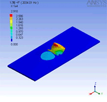 一般情況下,結(jié)構(gòu)體發(fā)生共振的固有值(固有振動數(shù))擁有多個,與此相應(yīng),會有各種各樣的振動模式。在該"功率電感器+基板"的分析模型中,隨著頻率的提高,各固有振動數(shù)也會出現(xiàn)各種各樣的振動模式。
