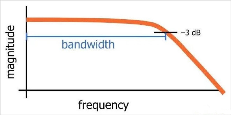 RC低通濾波器的截止頻率實(shí)際上是輸入信號幅度降低3dB的頻率(選擇該值是因?yàn)榉冉档?dB對應(yīng)于功率降低50%)。因此,截止頻率也稱為-3 dB頻率,實(shí)際上該名稱更準(zhǔn)確且信息量更大。術(shù)語帶寬是指濾波器通帶的寬度,在低通濾波器的情況下,帶寬等于-3 dB頻率(如下圖所示)。