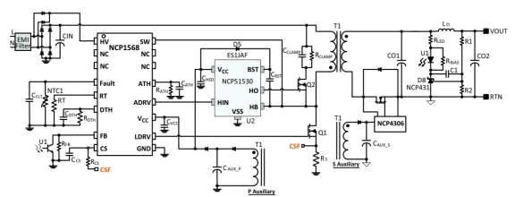 安森美半導體將NCP1568和NCP51530搭配,通過結合一個高能效的拓撲(ACF)和減小器件大小的高頻工作,滿足當前市場的需求。雖然這些優(yōu)勢是通過可靠的和已證實的硅基超級結FET實現(xiàn)的,但只要成熟,該方案也兼容GaN器件。