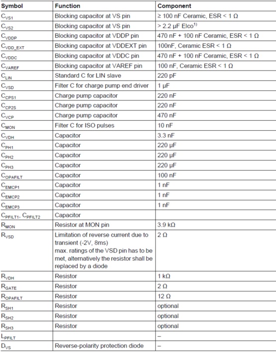 應(yīng)用框圖外接元件表: