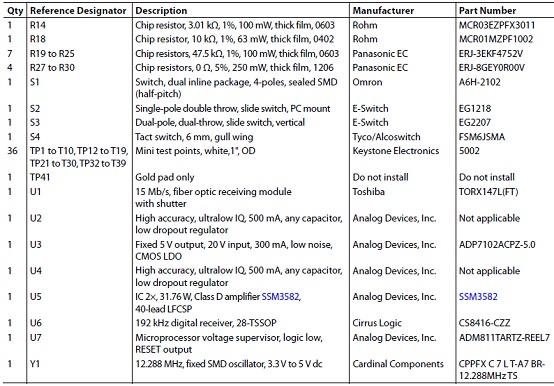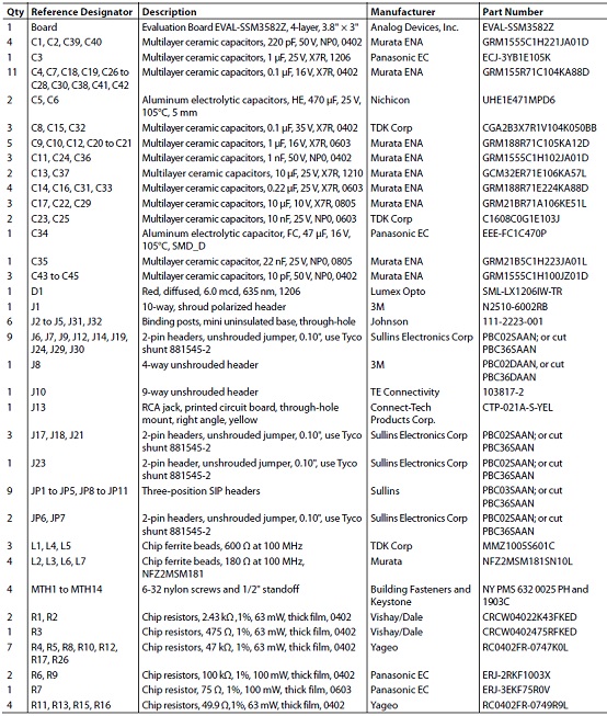 評(píng)估板EVAL-SSM3582Z材料清單: