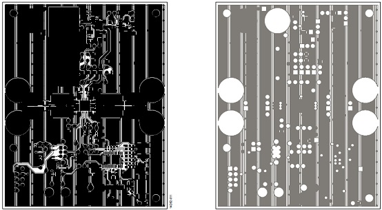 圖12.評(píng)估板EVAL-SSM3582Z PCB設(shè)計(jì)圖:左: 頂層,銅;右:第二層,銅