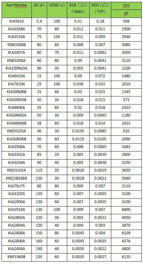 MOS管選型表