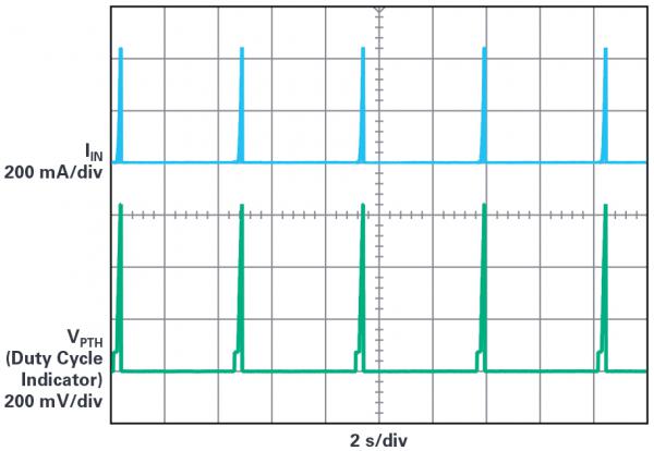 圖5.LTC4125未檢測到接收器時的運行情況。