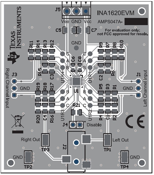 圖6.INA1620 EVM PCB設(shè)計(jì)圖:頂層布局