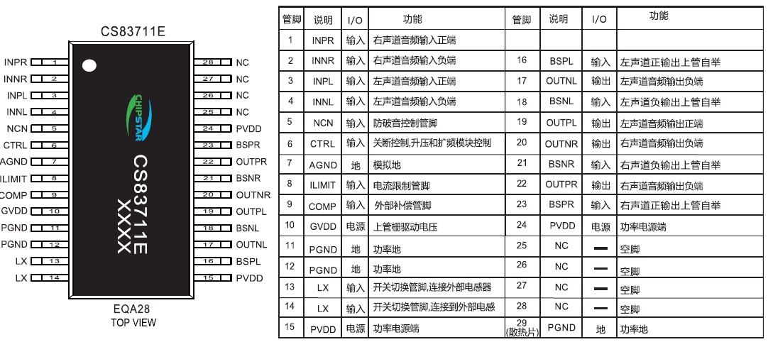 CS83711E提供了纖小的的EQA28封裝形式供客戶選擇,其額定的工作溫度范圍為-40℃至85℃。