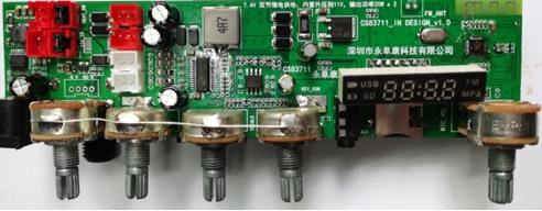 10.基于CS83711 兩節(jié)鋰電內(nèi)置升壓2×20W藍(lán)牙戶(hù)外音箱方案DEMO板實(shí)物圖