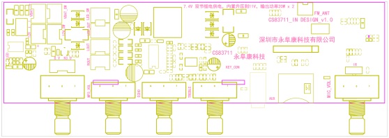 7. 基于CS83711 兩節(jié)鋰電內(nèi)置升壓2×20W藍(lán)牙戶(hù)外音箱方案DEMO PCB頂層設(shè)計(jì)圖