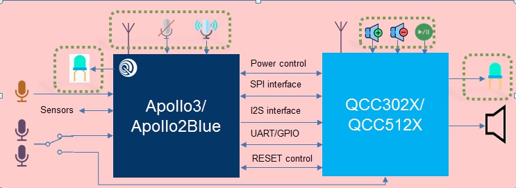 內(nèi)嵌Ambiq Micro超低功耗ARM4F MCU,工作電流小于10 μA/MHz。集成高精度中英文KWD關(guān)鍵詞檢測算法,閑態(tài)平均0.6mW,忙時(shí)平均3.06mW。高通新一代藍(lán)牙芯片方案,支持TWS和TWSplus,支持aptX技術(shù)可提供CD級音質(zhì)。配合DSP算法,可以支持CVC、ANC等降噪技術(shù),在通話時(shí)具有更清晰的效果。低功耗藍(lán)牙模式,在SBC編碼情況下最低4.3mA,支持更長的音頻工作時(shí)間。與高通手機(jī)平臺有很好的適配性,在aptx-ll模式下時(shí)延低至50~80ms。出色的聲學(xué)結(jié)構(gòu)和雙PCB設(shè)計(jì),提供高質(zhì)量的音樂體驗(yàn)和小巧的外觀。