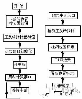 在程序的編制中,要特別注意步進電機在換向時的處理。為使步進電機在換向時能平滑過渡,不至于產(chǎn)生錯步,應(yīng)在每一步中設(shè)置標(biāo)志位。其中20H單元的各位為步進電機正轉(zhuǎn)標(biāo)志位;21H單元各位為反轉(zhuǎn)標(biāo)志位。在正轉(zhuǎn)時,不僅給正轉(zhuǎn)標(biāo)志位賦值,也同時給反轉(zhuǎn)標(biāo)志位賦值;在反轉(zhuǎn)時也如此。這樣,當(dāng)步進電機換向時,就可以上一次的位置作為起點反向運動,避免了電機換向時產(chǎn)生錯步。