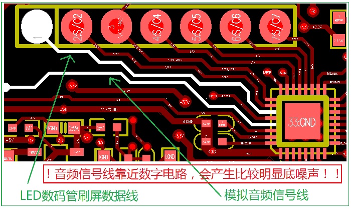 (2). 音頻信號走線盡量遠離數(shù)字電路。
