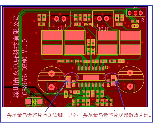 (1). 音頻功放芯片盡量靠近主控解碼芯片,音頻信號走線盡量短。