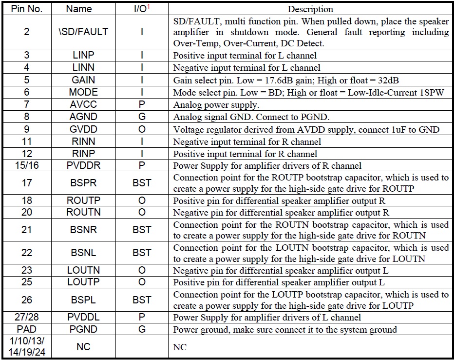 管腳兼容TPA3110/TPA3138/TPA3136/TPA3140/AD52068,方便客戶無(wú)縫切換。