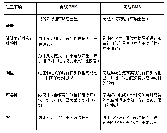 表1:有線BMS和無線BMS的比較