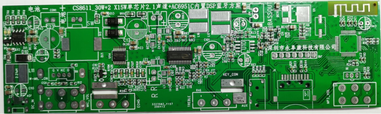 3,音頻功率放大芯片采用CS8611E,在12V電壓提供20W+2×10W功率輸出;