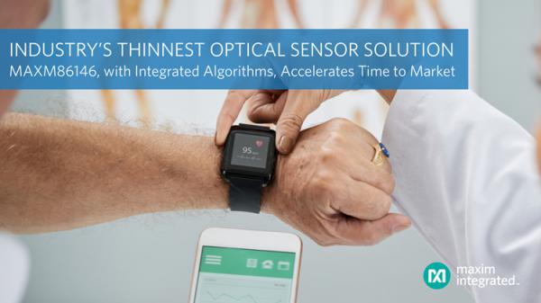 今日,Maxim Integrated Products, Inc (NASDAQ: MXIM) 宣布推出MAXM86146內(nèi)置雙路光電檢測器的光傳感器方案,該器件為業(yè)界最薄的解決方案,幫助設(shè)計者快速、輕松地設(shè)計可穿戴健康、健身產(chǎn)品。該模塊包含心率和氧飽和度 (SpO2) 監(jiān)測高級算法,并支持活動能力分級,為用戶提供真正的交鑰匙方案。器件尺寸小、易于設(shè)計,以更小的空間實現(xiàn)生物檢測創(chuàng)新設(shè)計,加速高精度、連續(xù)監(jiān)測設(shè)備的開發(fā)進程。