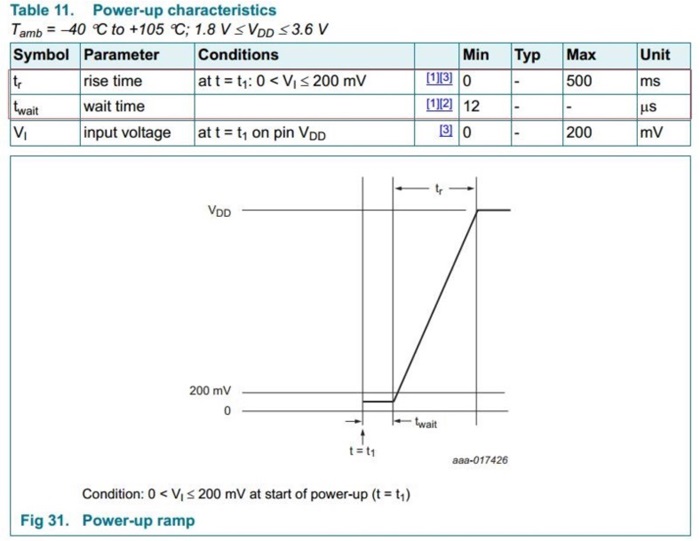 我們都知道MCU都有一定的上電時(shí)序要求,例如圖3為某MCU的上電要求,根據(jù)圖中可知該MCU對(duì)上電的要求有: