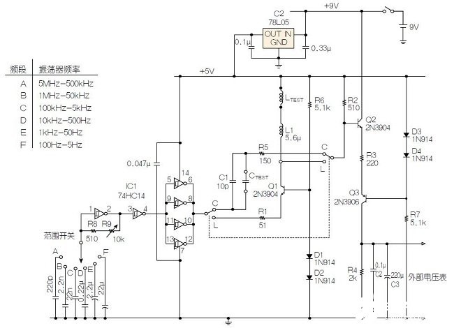 但是,要想覆蓋這么大的值域,會稍微有點麻煩,因為要確定被測器件的值,您需要先調(diào)節(jié)可變電阻器,然后再查看校正曲線上對應的電容值或電感值,而不是直接讀數(shù)。