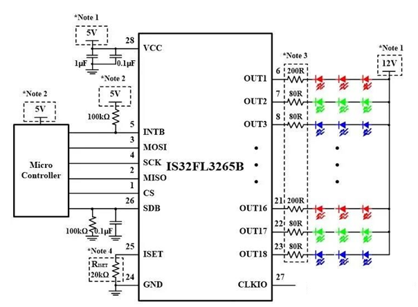 IS32FL3265A/B:輸出可耐40V高壓18路恒流驅(qū)動(dòng)芯片