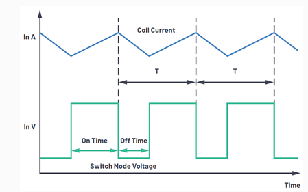 圖 2. 降壓型開關穩(wěn)壓器開關的時域表示(CCM 模式下線圈電流)。