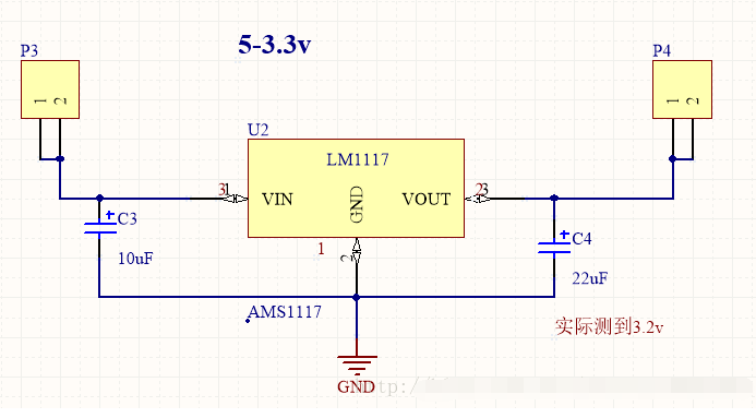 5v轉(zhuǎn)3.3v用AMS1117電路圖如下: