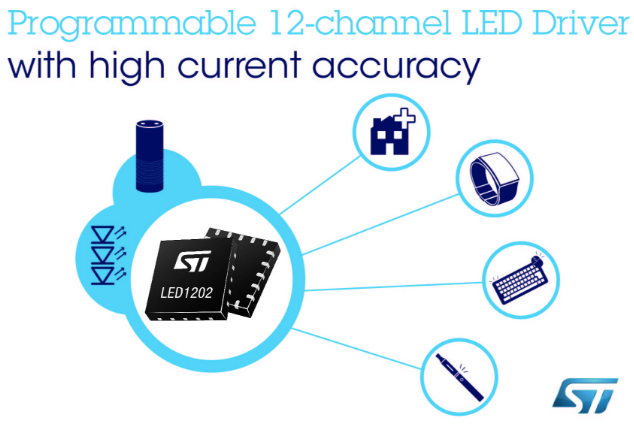 2019年4月10日,意法半導(dǎo)體 12通道LED驅(qū)動(dòng)器LED1202采用專利技術(shù),可防止在“流水燈”或“跑馬燈”LED動(dòng)畫特效中出現(xiàn)分散注意力的閃光現(xiàn)象,使智能家居設(shè)備、穿戴設(shè)備和小家電的人機(jī)交互更流暢、更自然。