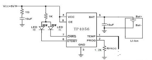 由于采用了內(nèi)部PMOSFET架構(gòu),加上防倒充電路,所以不需要外部隔離二極管。熱反饋可對充電電流進(jìn)行自動(dòng)調(diào)節(jié),以便在大功率操作或高環(huán)境溫度條件下對芯片溫度加以限制。充電電壓固定于4.2V,而充電電流可通過-一個(gè)電阻器進(jìn)行外部設(shè)置。當(dāng)充電電流在達(dá)到最終浮充電壓之后降至設(shè)定值1/10時(shí),TP4056將自動(dòng)終止充電循環(huán)。