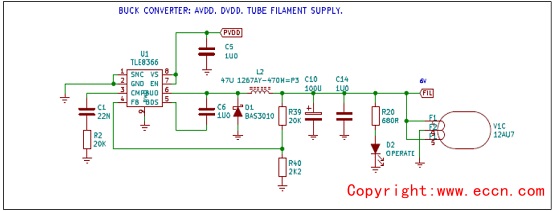 圖7.電子管燈絲,模擬和數(shù)字降壓轉(zhuǎn)換器電源