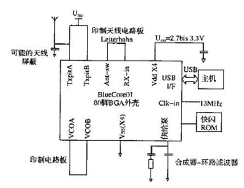 大多數(shù)藍(lán)牙芯片供應(yīng)商決定采用多芯片方案,其中基帶DSP微控制器單元用CMOS技術(shù)生產(chǎn),HF功能需要的模塊用雙極技術(shù)生產(chǎn)。