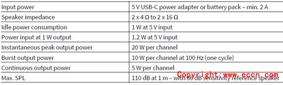 · Up to 40 W instantaneous peak output power with a USB-C power supply or battery pack