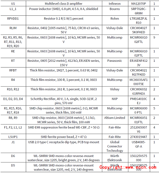 40W開(kāi)發(fā)板KIT_ARDMKR_AMP_40W材料清單: